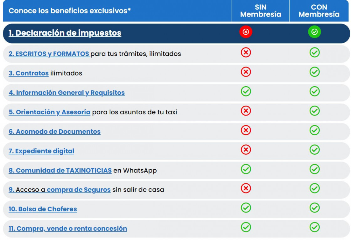 Obtén los beneficios exclusivos del Club TaxiTramites sin costo adicional.